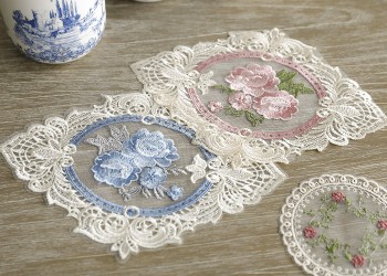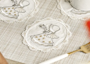 빈티지 보넷걸 자수 레이스 도일리 티코스터..