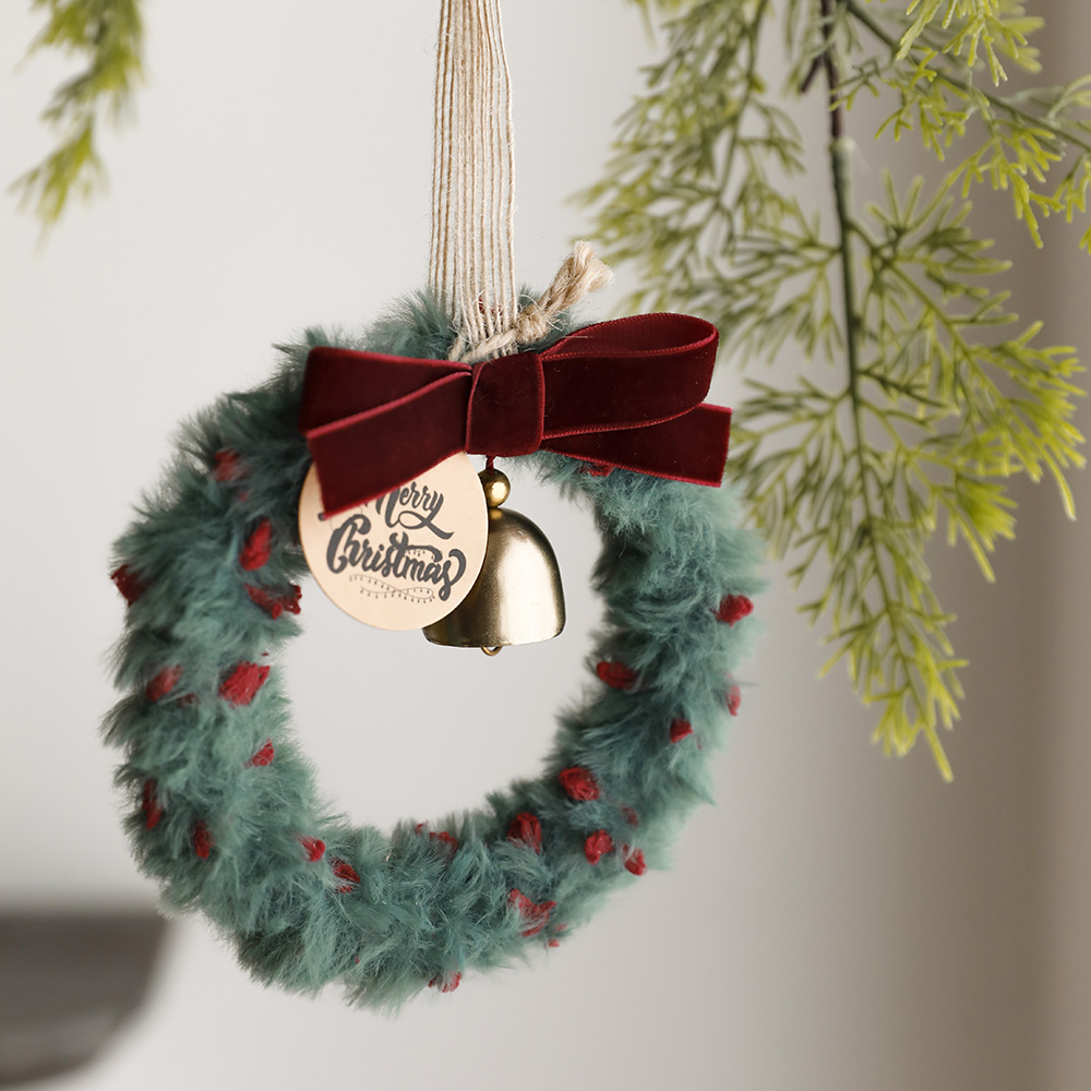 포근한 털실 소재로 제작된 미니 리스에
