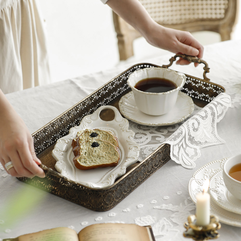 샤토 앤틱 메탈 트레이 철제 직사각형 손잡이..