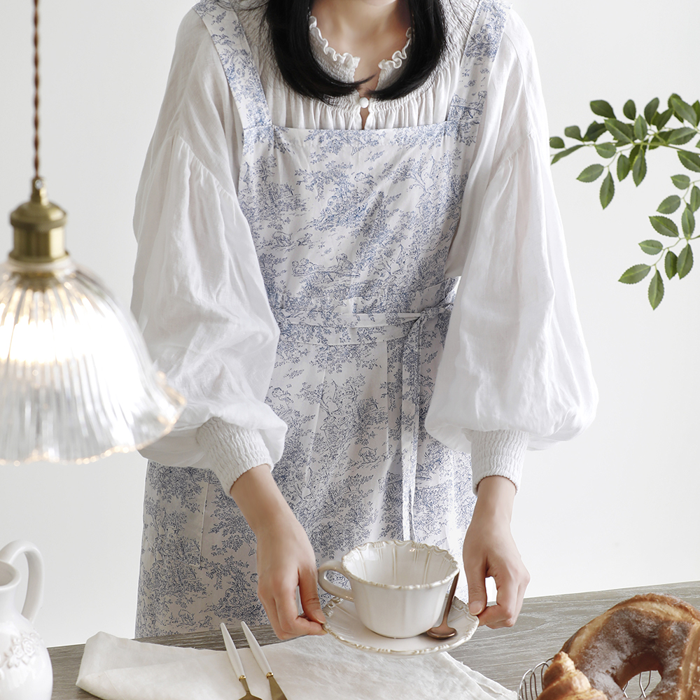 모닝블루 뜨왈 프릴 롱 앞치마 면 원피스 주..