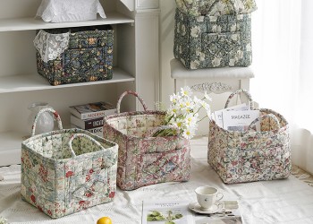 블룸가든 빈티지 플라워 누빔 퀼팅 수납 바스..