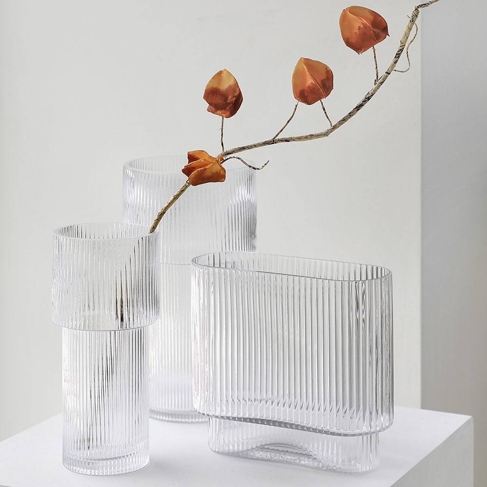 NORA 플리츠 인테리어 북유럽 오브제 유리 화병 3타입..
