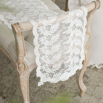 탕부르 자수 레이스 테이블 러너